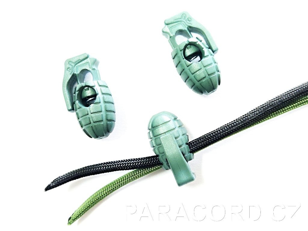 Plastová brzdička (stahovadlo) ve tvaru granátu.