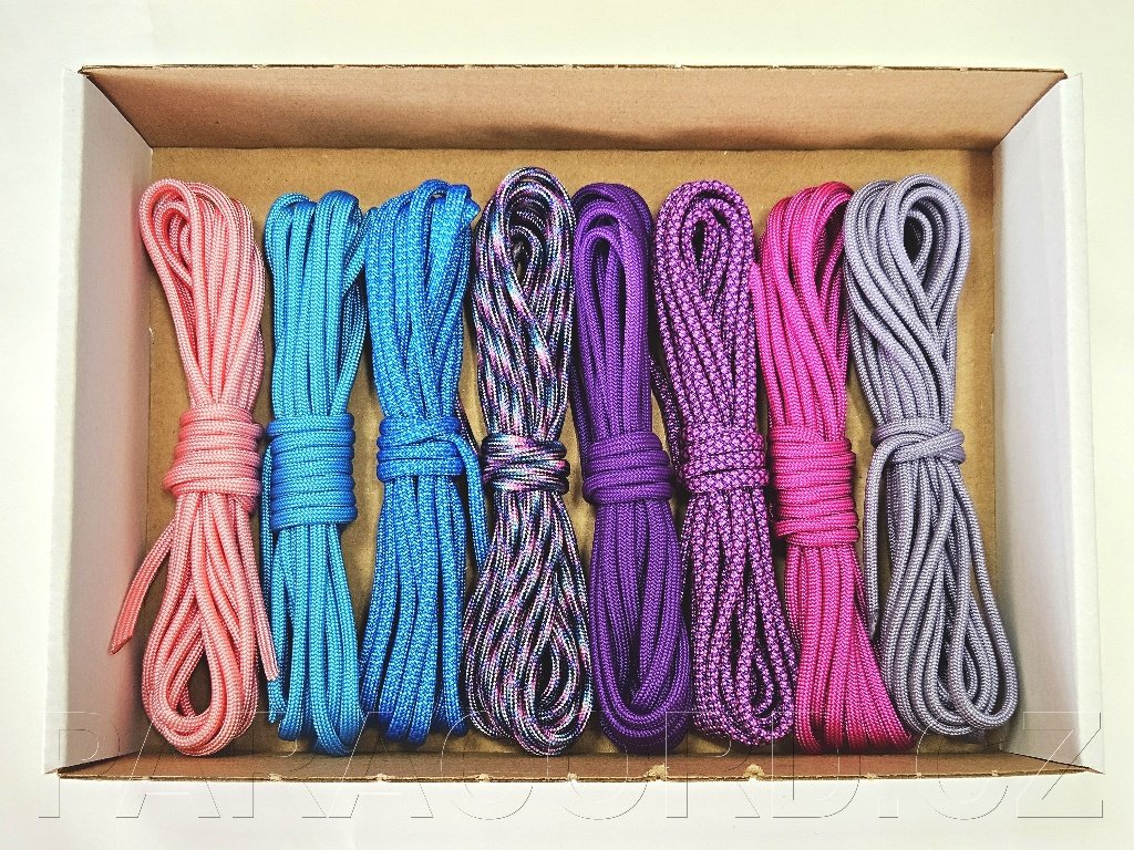 Na výběr máte z 5 barevných variant sad. Každá z nich obsahuje jinou kombinaci barev paracordu – můžete si tak vybrat sadu, která nejlépe ladí s vaším stylem nebo tvořením.