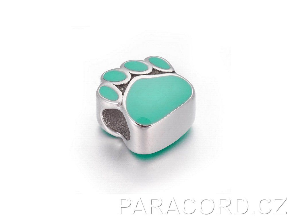 Nerezový korálek s motivem tlapky a mentolovým detailem