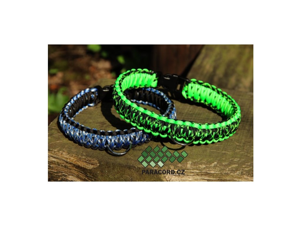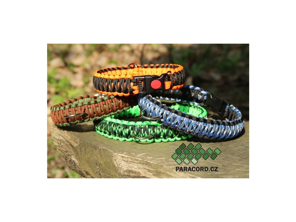 Stylový obojek pro psa pletený z paracordu. Obojek je pletený vzorem KOBRA DOUBLE DB, tzn. ze dvou kusů padákové šňůry. Šíře vzoru je 3cm a délka obojků se odvíjí od Vámi zvolené velikosti, stejně jako obsah paracordu.