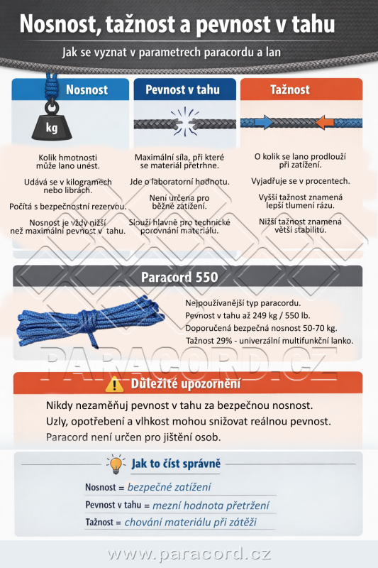 Minimální pevnost v tahu: 550 lb (cca 249 kg)