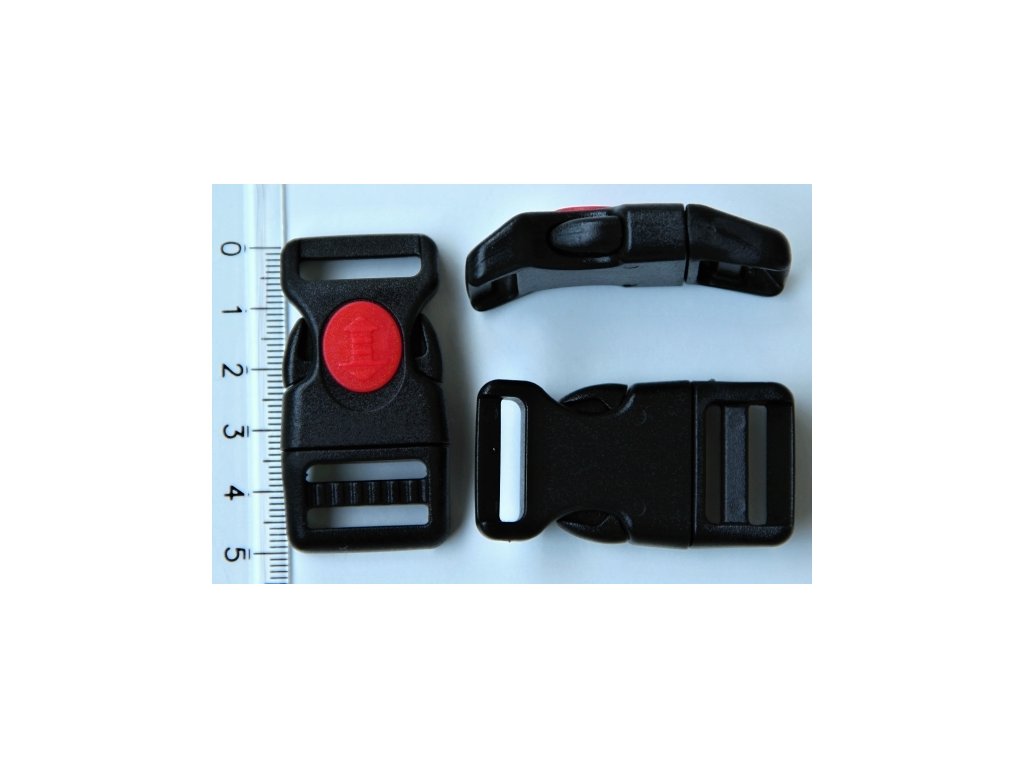 Materiál: acetal. Délka 51mm, šířka 25mm, na popruh široký 20mm.