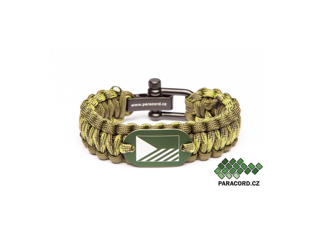 Unikátní stylový náramek vybavený vpleteným kovovým plíškem s motivy České bojové vlajky (zelený).