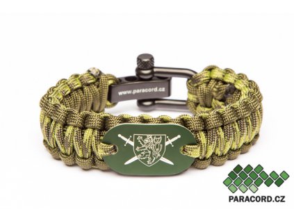 Unikátní stylový náramek vybavený vpleteným kovovým plíškem s motivy České bojové vlajky (zelený).