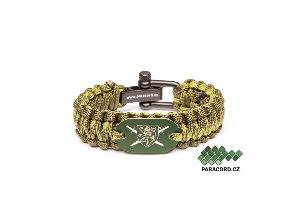 Unikátní stylový náramek vybavený vpleteným kovovým plíškem s motivy AČR (zelený).