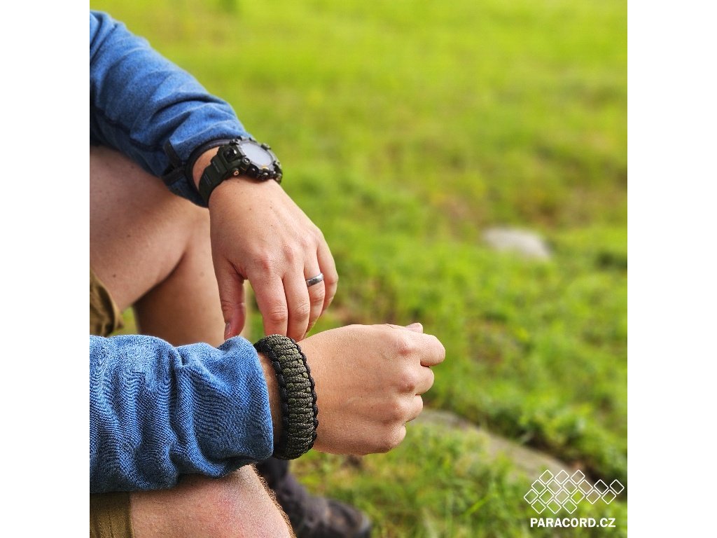 Survival paracord náramek je náramek upletený z několika metrů kvalitní padákové šňůry o šířce 4mm a výdrži až 250kg, který můžete kdykoliv v případě nutnosti rozmotat a použít třeba na stavbu přístřešku, první pomoc, lov, opravu vybavení. Využití najdete spoustu, jak v přírodě, tak ve městě.