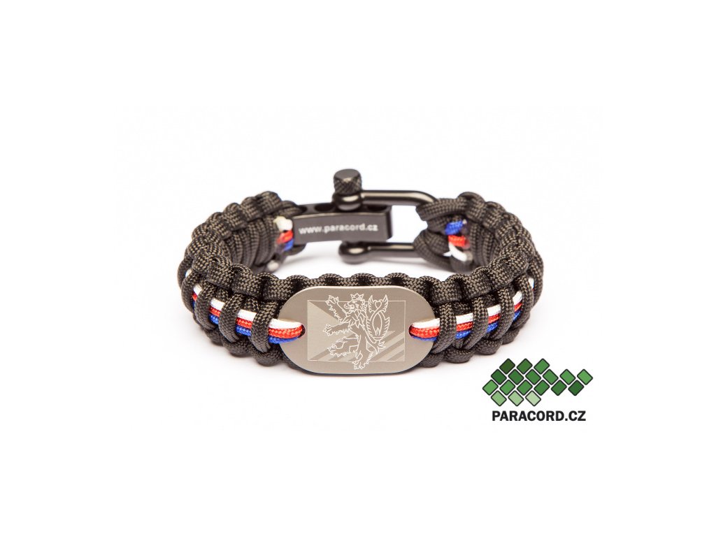 Unikátní stylový náramek vybavený vpleteným kovovým plíškem s motivy České republiky.
