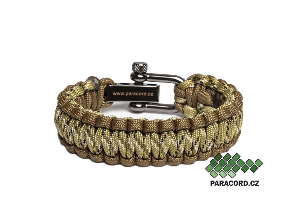 Popis náramku: Armádně laděný náramek do pouštního prostředí je upletený klasickým léty osvědčeným vzorem, který dobře padne na ruku a nabízí rozumnou zásobu paracordu.